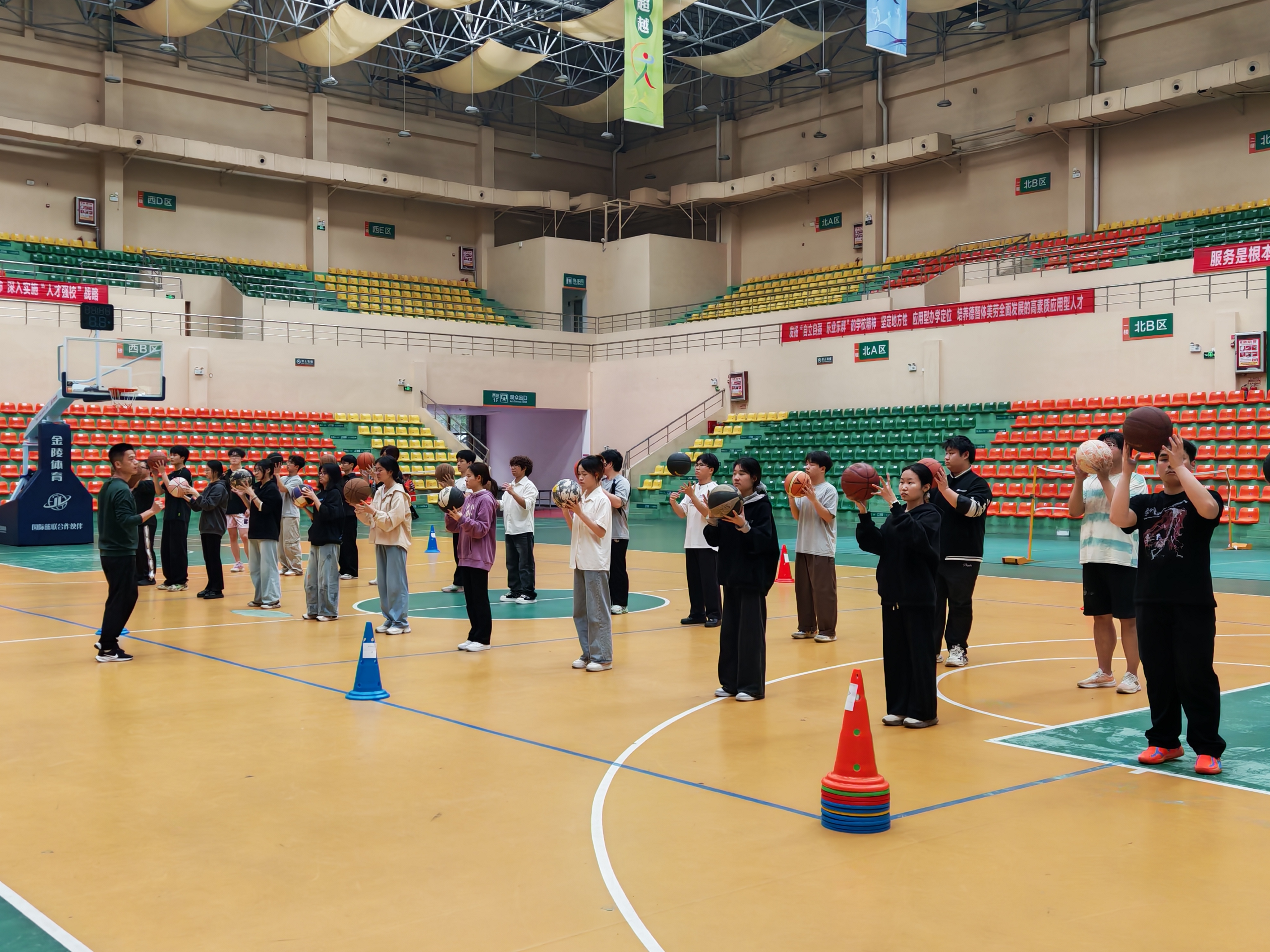 本次听课课程为大二篮球选修班,授课内容是篮球双手胸前传接球技术。课堂上,傅丽兵老师教学准备充分,教学思路清晰,先通过细致讲解与标准示范,让学生全面掌握双手胸前传接球的动作要领、发力技巧与传球路线,随后循序渐进开展分组练习、纠错指导、实战运用等教学环节。整个课堂节奏紧凑,教学方法灵活多样,充分调动起学生的参与积极性,大二选修班学生们精神饱满,认真聆听动作要点,积极投入技能练习,课堂氛围活跃且秩序井然,充分展现了良好的体育课堂风貌。
